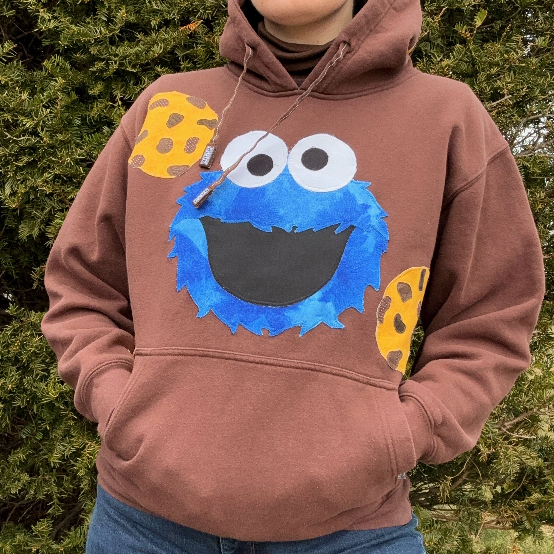 material: secondhand hoodie (60 cotton, 40 polyester), reclaimed textiles, recycled materials