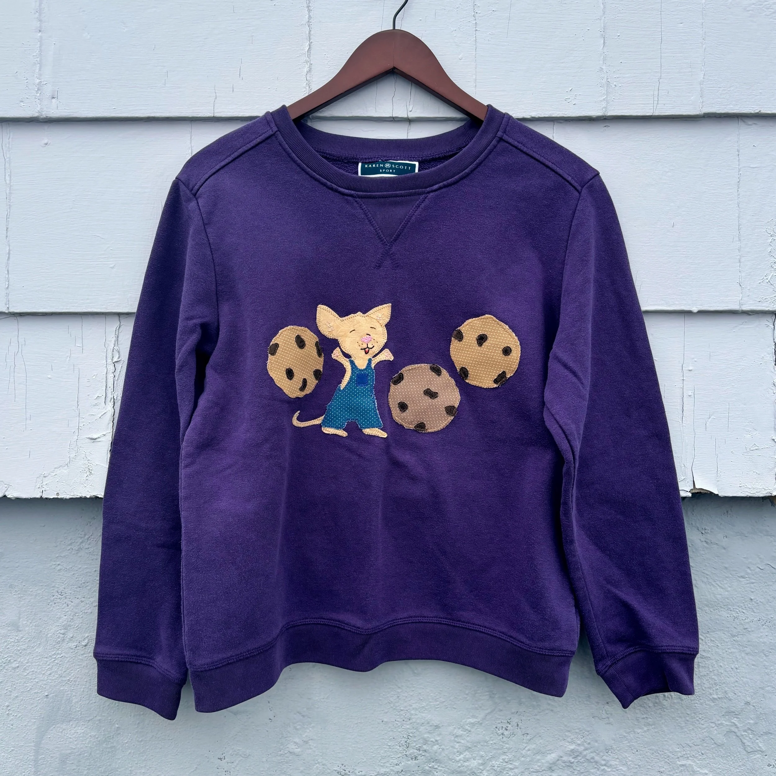 material: secondhand purple crewneck (60 cotton, 40 polyester), reclaimed textiles, recycled materials