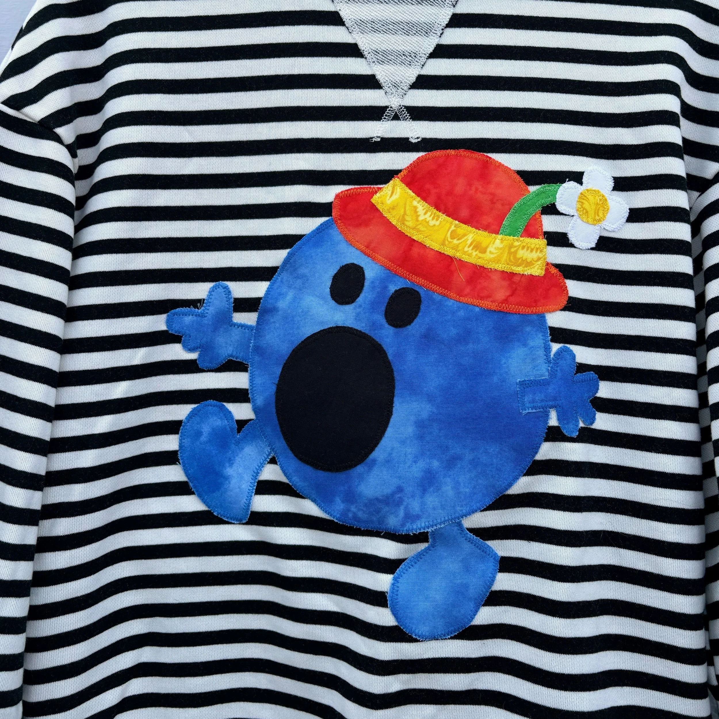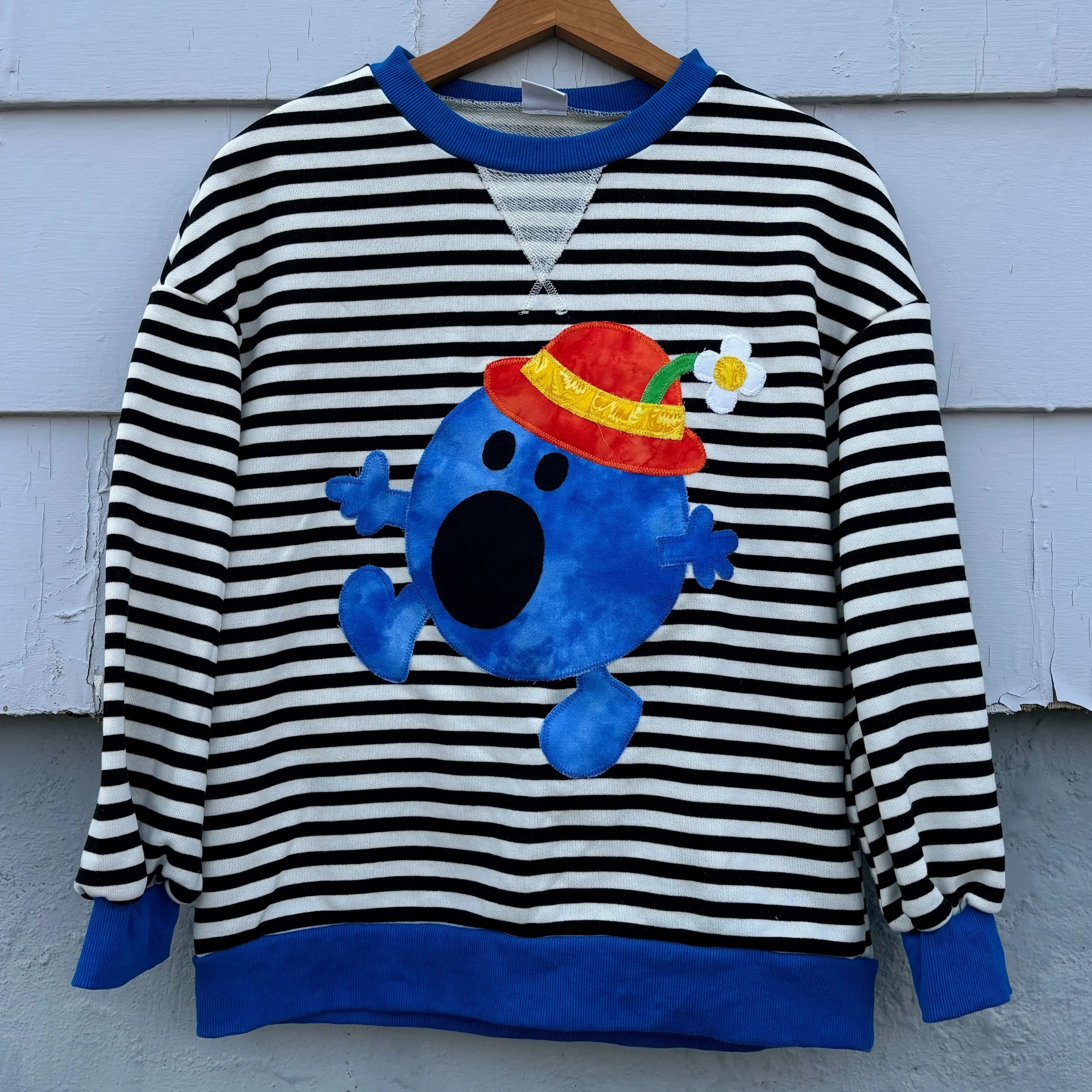 material: secondhand crewneck (75 cotton, 25 polyester), reclaimed textiles, recycled materials
