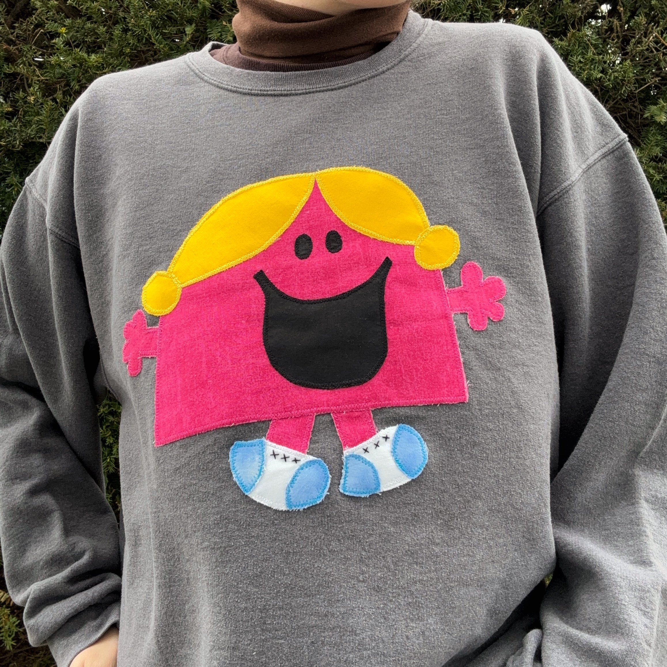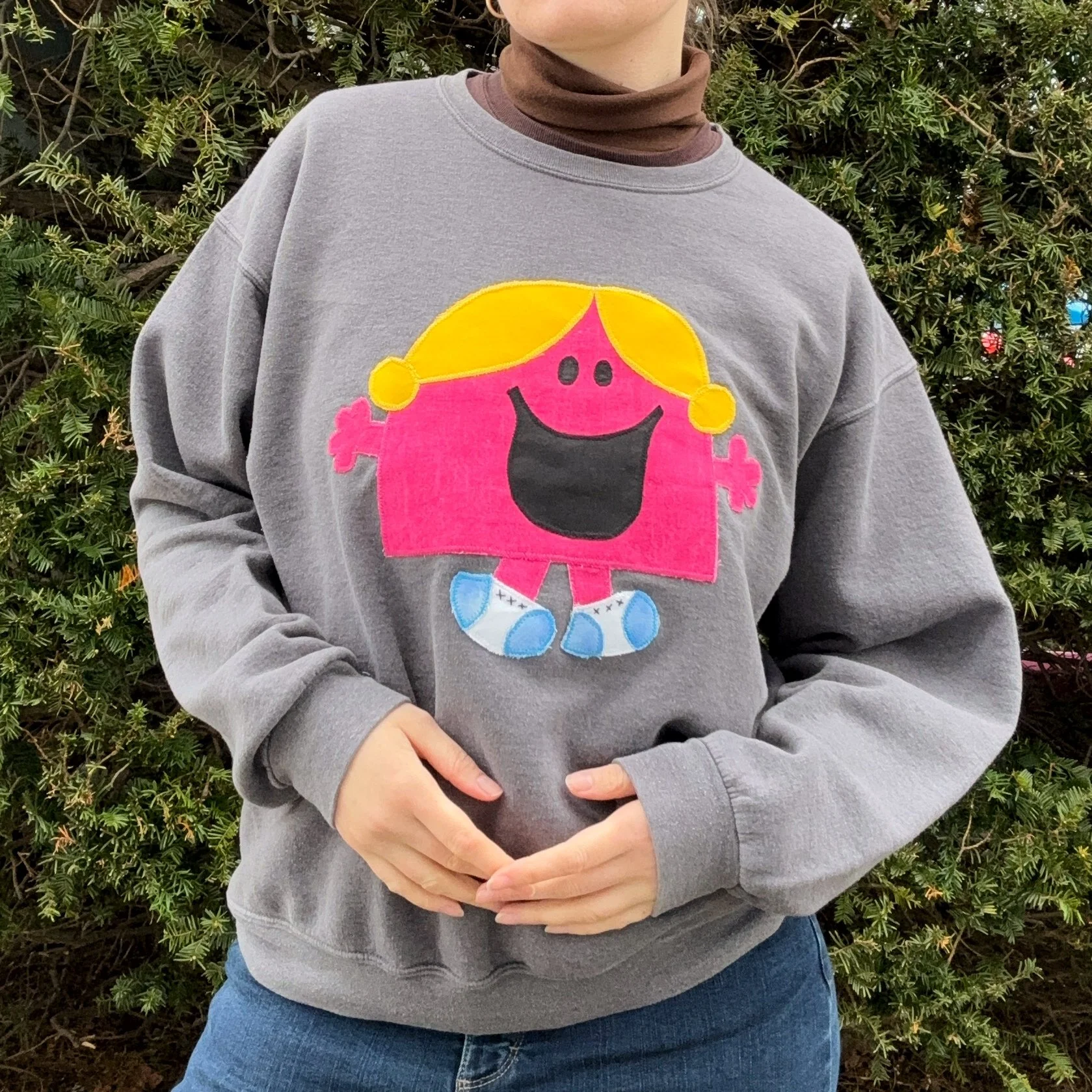 material: secondhand crewneck (n/a feels like a cotton poly blend), reclaimed textiles, recycled materials
